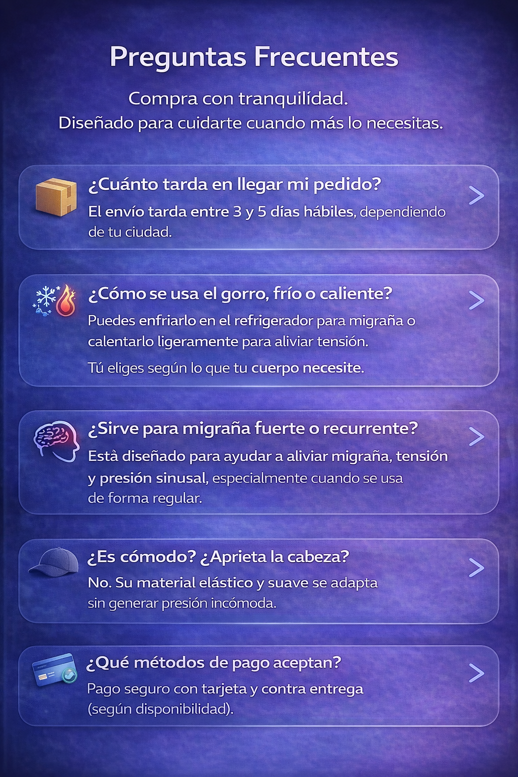 ⭐️⭐️⭐️⭐️⭐️ “Lo uso cuando empieza la migraña y el frío me ayuda muchísimo.”